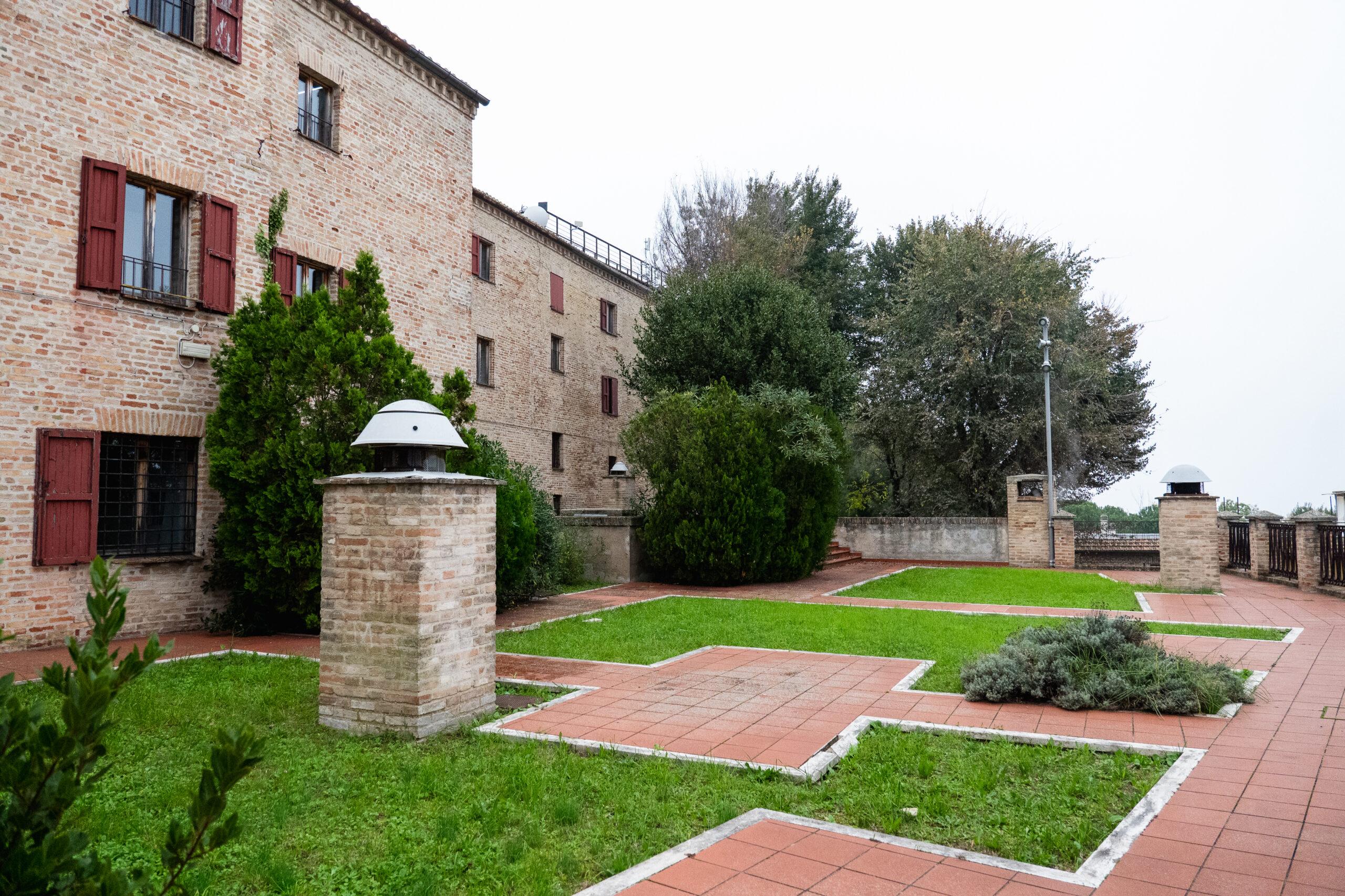 Dalla scala si saliva al salone di rappresentanza con balcone sulla piazza. L’edificio, a forma di semicastello, divenuto poi dimora dei Bourbon del Monte, era stato interessato da numerose stratificazioni, ed era ormai un insieme di residenze, quando il terremoto del 1972 azzerò la situazione, crean- do le condizioni per un esproprio da parte del Comune, che decise di trasformarlo in museo, sede di spettacoli, sala convegni e poi sede comunale.
