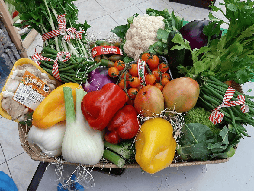 Oltre a frutta e verdura, sono disponibili verdure già pronte per essere cucinate, barattolame e formaggi freschi.