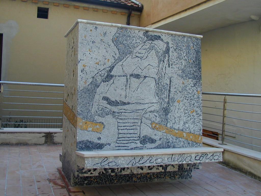 Nel cuore del centro storico di Falconara Alta, proprio di fronte all’ingresso della sala consiliare, si trova una singolare opera d’arte urbana: la panchina musiva “Corsa”, realizzata dall’artista falconarese Carlo Cecchi.